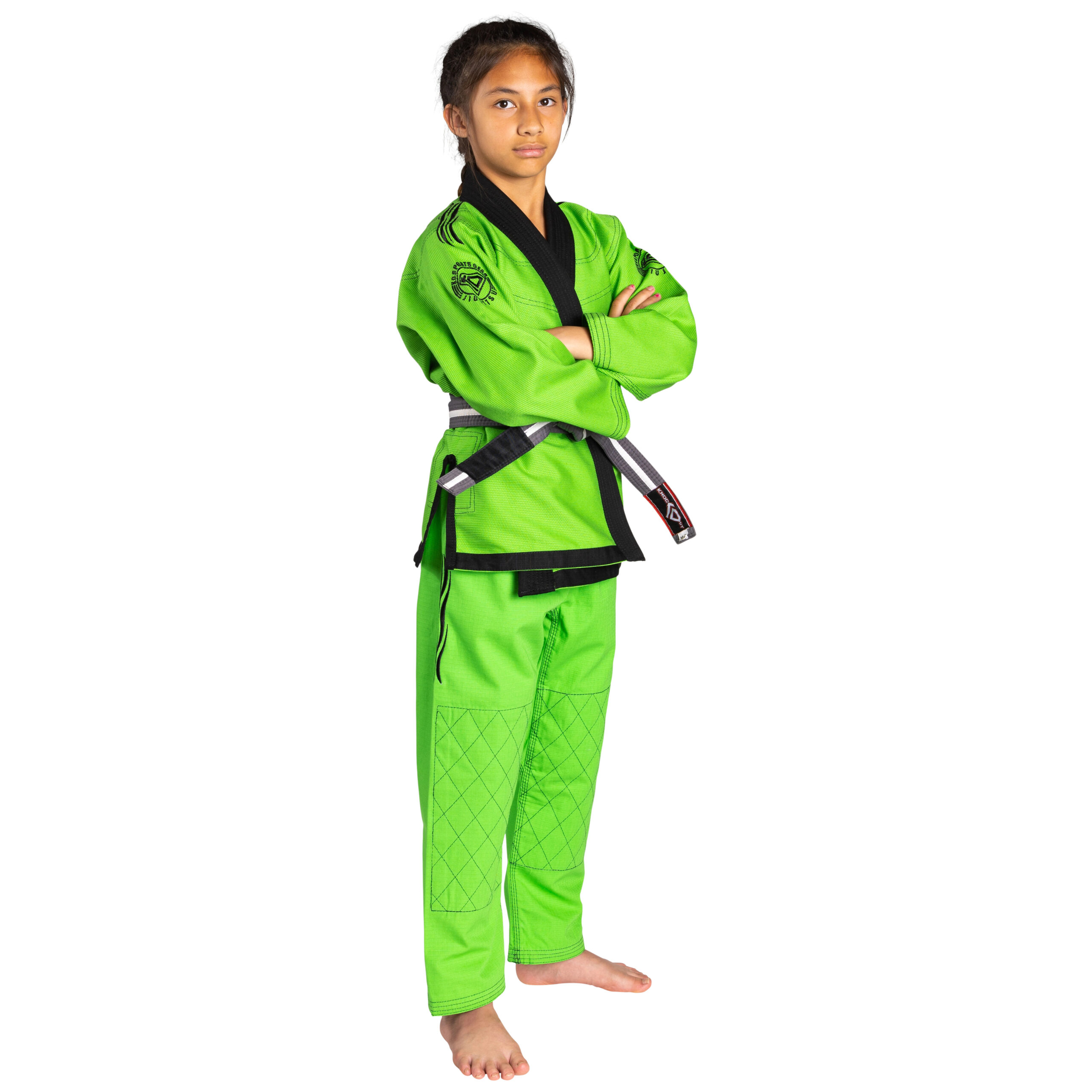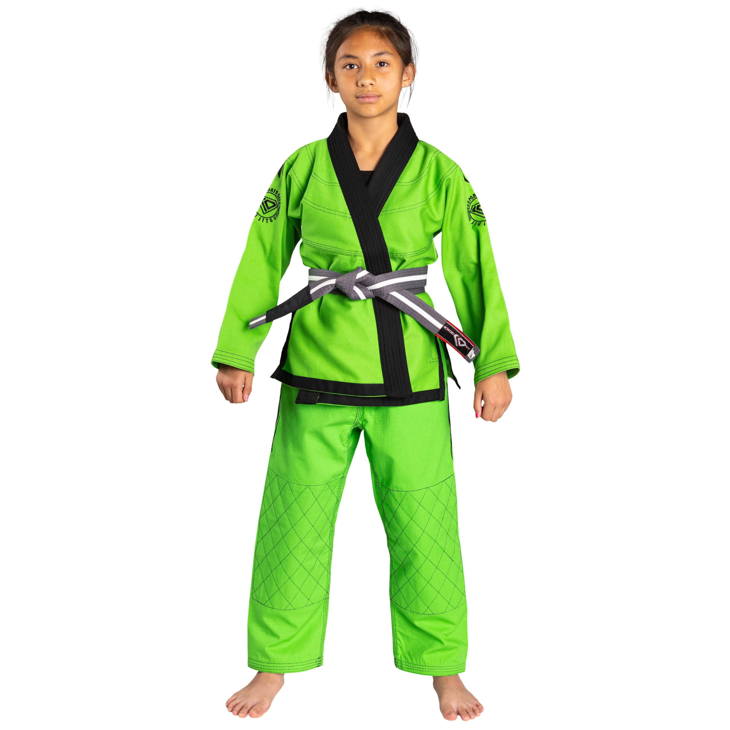 Stand out with the fun and vibrant Green Kids Gi by KO Sports Gear. If you belong to a gym with strict BJJ rules that only allow white, blue, and black gis, you might not be able to wear this gi. However, if your gym allows a bit of fun and creativity, you can enjoy sporting something different and eye-catching.