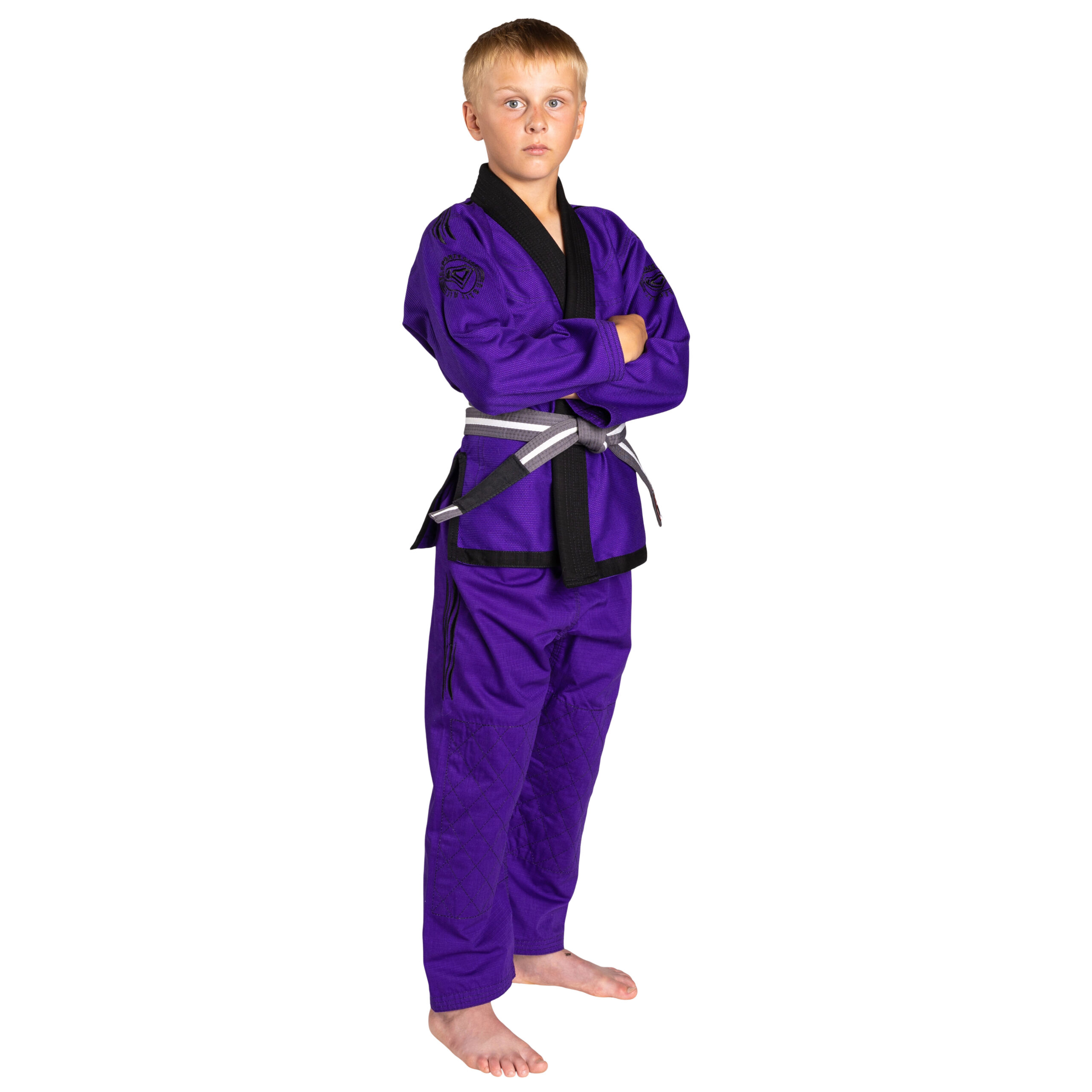 Stand out with the fun and vibrant Purple Kids Gi by KO Sports Gear. If you belong to a gym with strict BJJ rules that only allow white, blue, and black gis, you might not be able to wear this gi. However, if your gym allows a bit of fun and creativity, you can enjoy sporting something different and eye-catching.