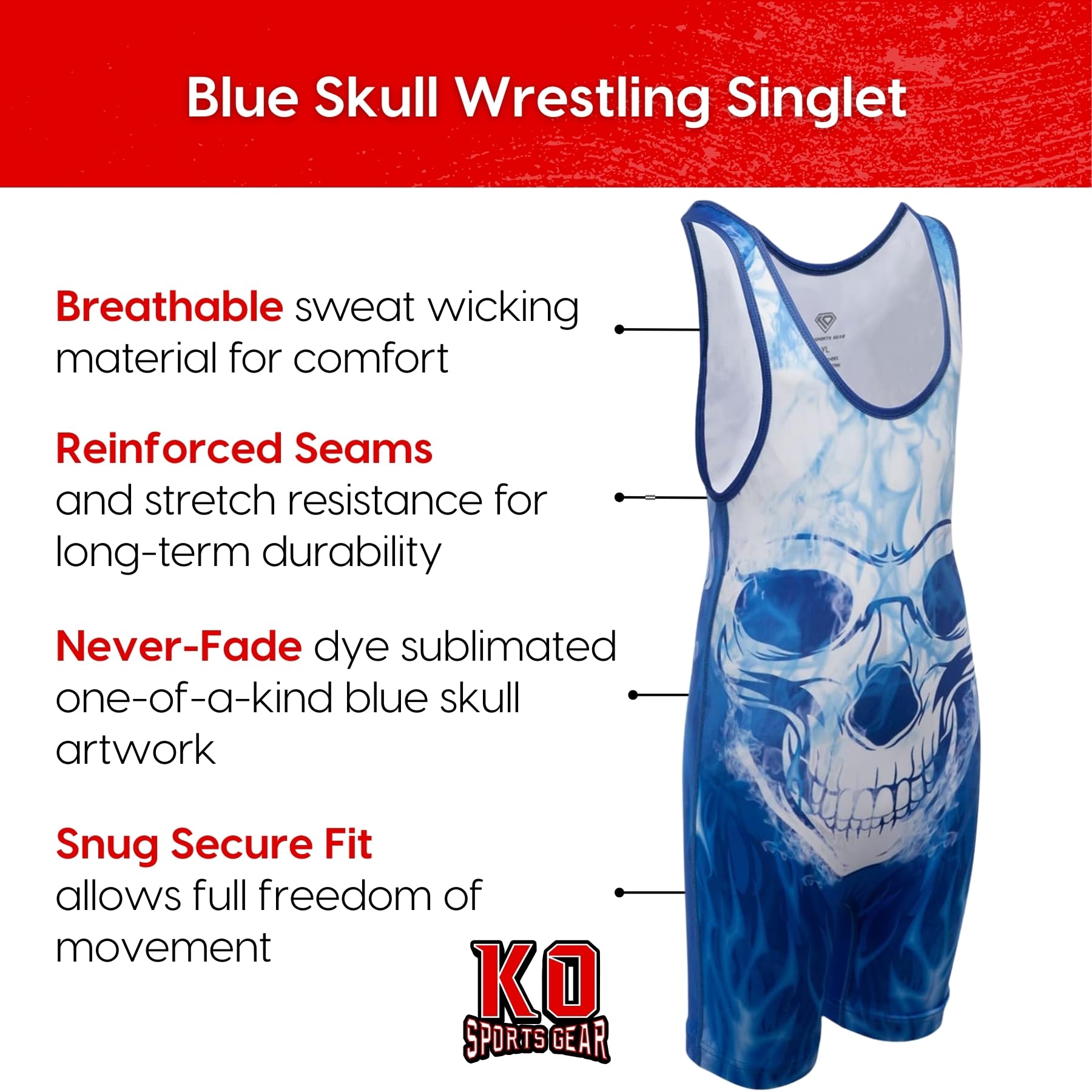 Blue Flaming Skull Wrestling Singlet KO Sports Gear