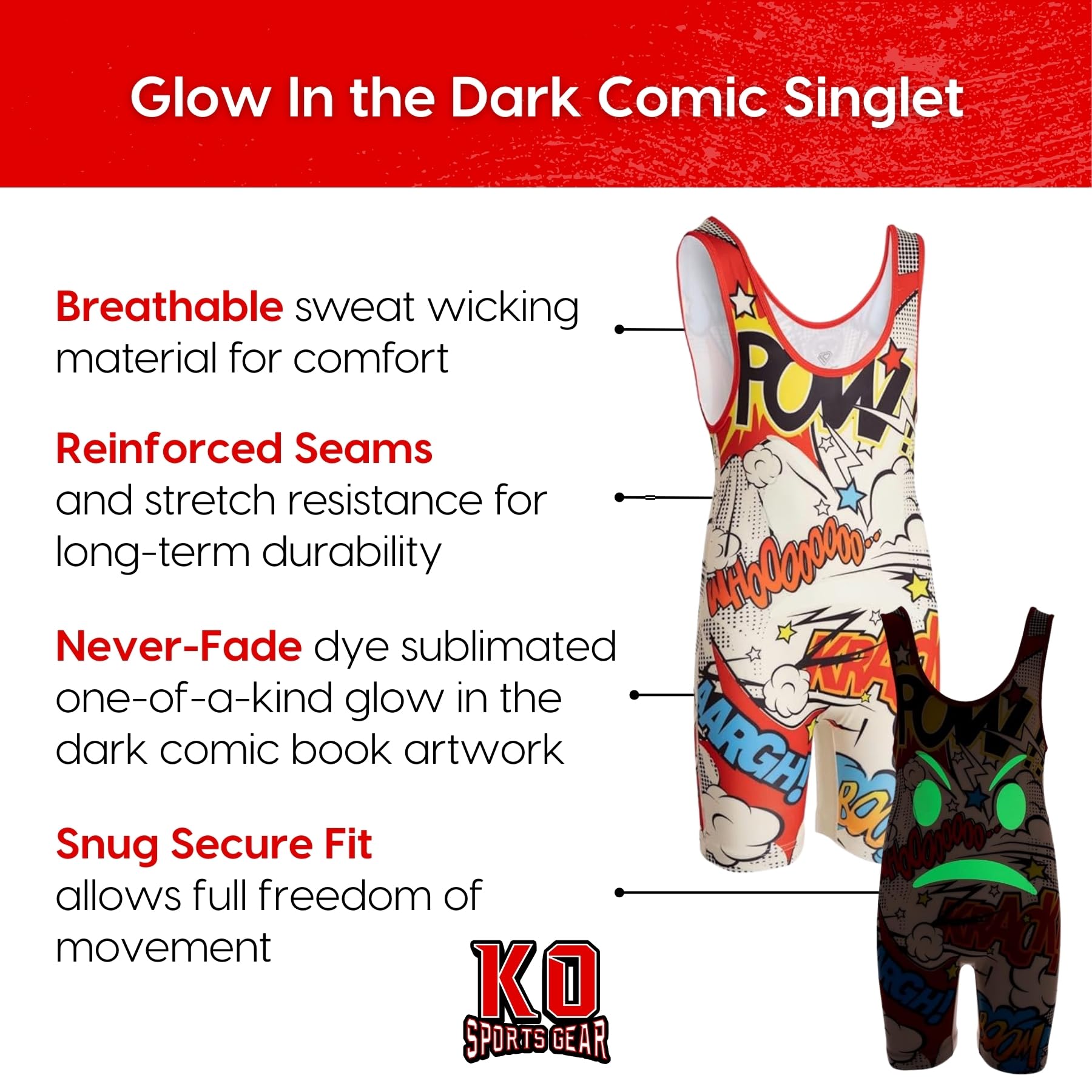 Choose the Glow In The Dark Comic Book Wrestling Singlet by KO Sports Gear for a blend of standout style, unmatched comfort, and durable performance.